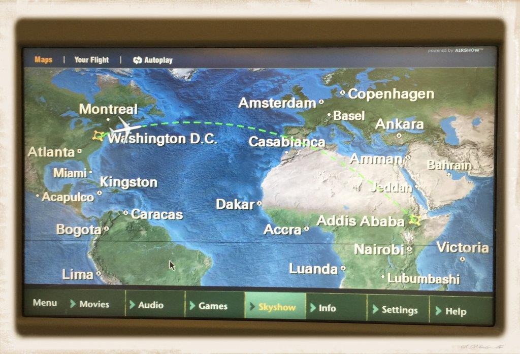 On our 13 hour slingshot flight across the Atlantic to Ethiopia, we sat next to 2 delightful (I mean that) infants who spent most of the time very active and crying a lot so rest was not on the menu. We admired the mom who was flying alone for how she travelled with those bundles of energy always on the move.
